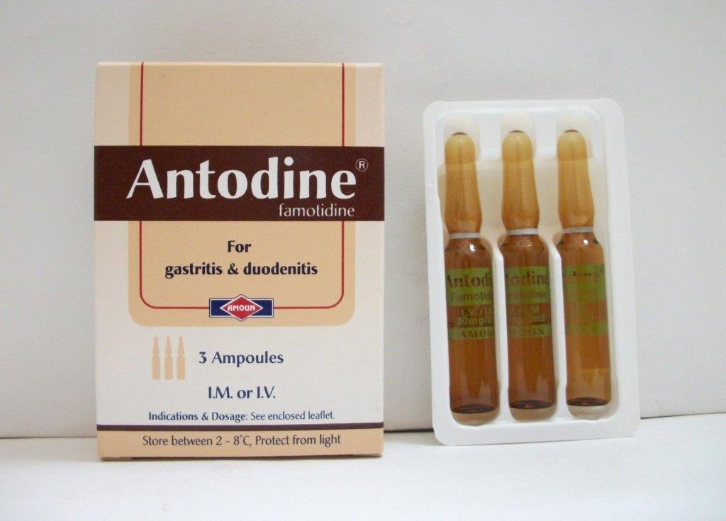 انتودين 20 مجم/2 مل أمبولات (Antodine Injection) هو دواء يُستخدم لعلاج حموضة المعدة الشديدة، قرحة المعدة والاثني عشر، وارتجاع المريء في الحالات التي لا يمكن فيها تناول الأدوية عن طريق الفم