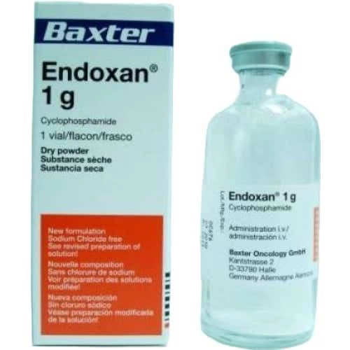 اندوكسان 1جم (Endoxan 1 g Vial) هو دواء يحتوي على المادة الفعّالة سيكلوفوسفاميد (Cyclophosphamide)، وهو من أدوية العلاج الكيميائي التي تنتمي إلى مجموعة العوامل المؤلكلة. يُستخدم لعلاج أنواع مختلفة من السرطانات وأمراض المناعة الذاتية.