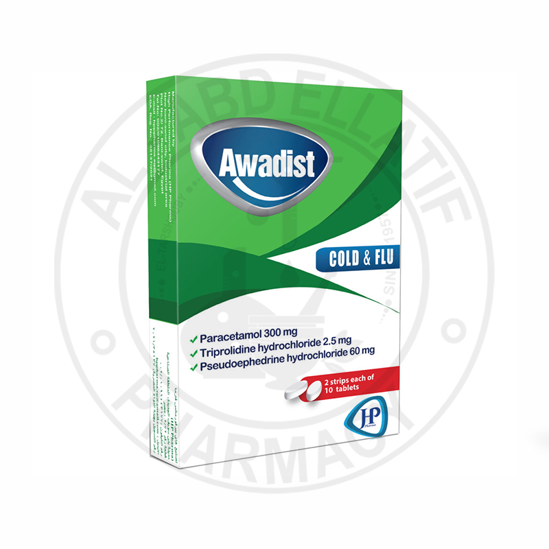 اواديست كولد & فلو داي 20 قرص (Awadist Cold & Flu Day) هو دواء مركّب مخصص لعلاج أعراض نزلات البرد والإنفلونزا خلال النهار بدون ما يسبب نعاس.