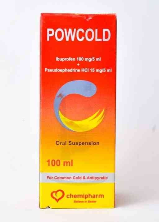 بوكولد معلق شرب زجاجة 100 مل Powcold سُسبنشن (Powcold Suspension 100 ml) هو شراب لعلاج أعراض نزلات البرد والإنفلونزا الذي يساعد على تخفيف احتقان الأنف، الصداع، ارتفاع الحرارة، آلام الجسم، والتقليل من أعراض البرد الشائعة. الدواء يحتوي على مزيج من إيبوبروفين ومزيل احتقان يساهم في راحة سريعة نسبيًا أثناء المرض.