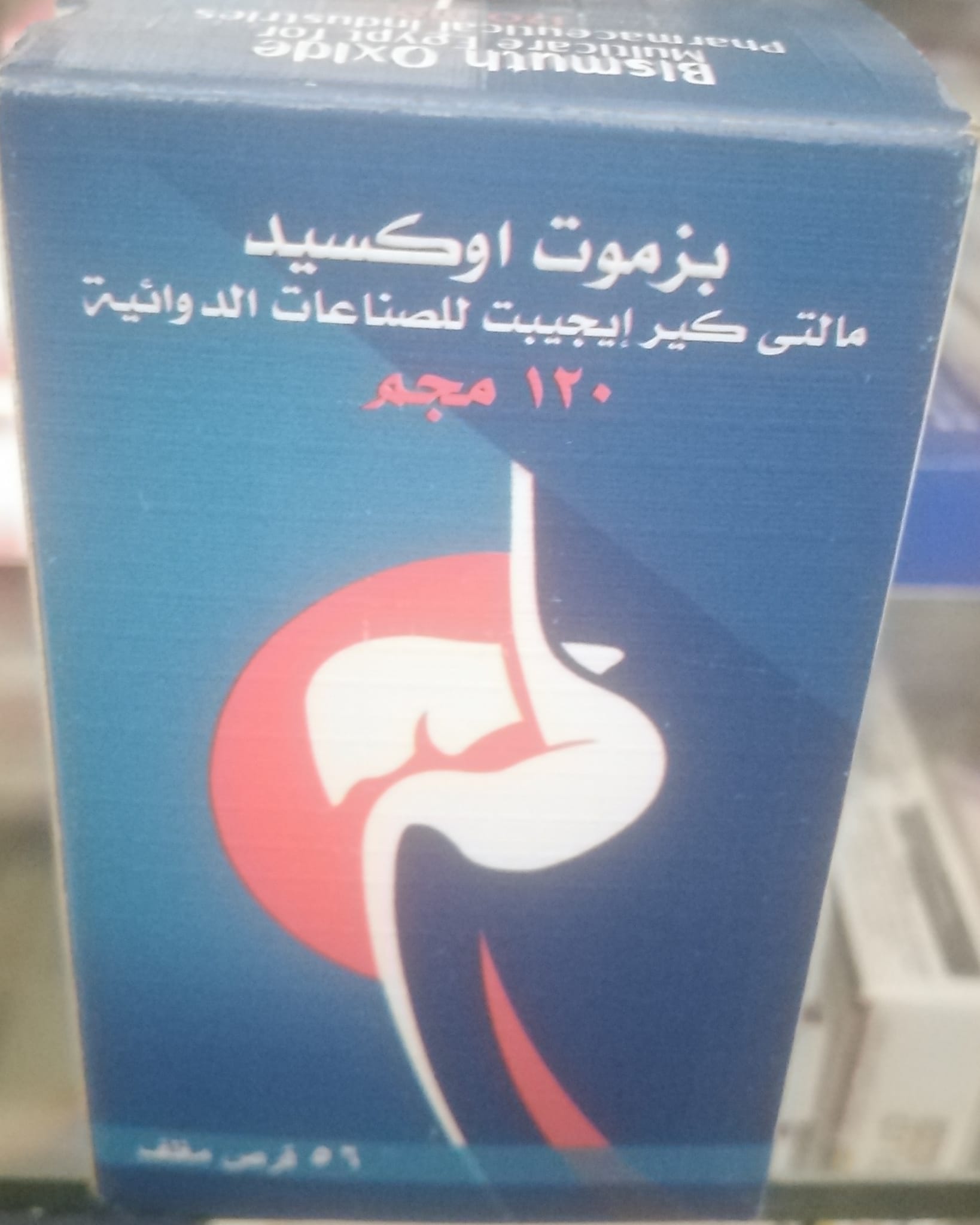 بيزموث أوكسايد 120 مجم 56 قرص أقراص تُستخدم لعلاج قرحة المعدة واضطرابات الجهاز الهضمي، تساعد على حماية بطانة المعدة وتقليل التهيج، وتُعد جزءًا مهمًا من بروتوكولات علاج جرثومة المعدة، عبوة كبيرة مناسبة للكورس العلاجي الكامل