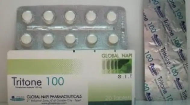 ترايتون 100 أقراص تحتوي على المادة الفعالة تريميبوتين ماليات، وهي مضاد للتقلصات ومنظم لحركة الأمعاء.