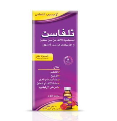تلفاست شراب هو دواء مضاد للحساسية يحتوي على المادة الفعّالة فيكسوفينادين (Fexofenadine)، وهو مضاد للهستامين يُستخدم لتخفيف أعراض الحساسية مثل العطس، سيلان الأنف، الحكة، وطفح الجلد.