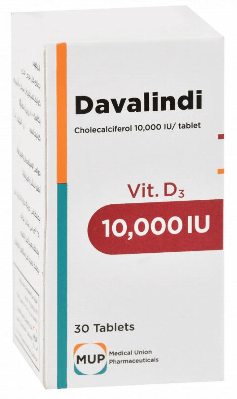 دافاليندي 10,000 وحدة هو دواء يحتوي على فيتامين D3 (كوليكالسيفيرول) بجرعة علاجية عالية، ويُستخدم في علاج نقص فيتامين د الشديد والمتوسط، ودعم صحة العظام والأسنان والعضلات.