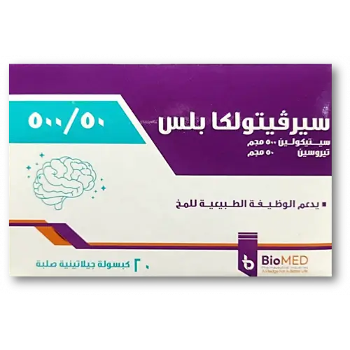 سيرفيتولكا 500 مجم هو مكمل غذائي يحتوي على المادة الفعالة سيتيكولين (Citicoline)، وهي مادة كيميائية طبيعية موجودة في الدماغ. تُستخدم سيتيكولين لتحسين الوظائف الإدراكية والذاكرة، وتُعتبر مفيدة في حالات السكتة الدماغية وإصابات الدماغ.