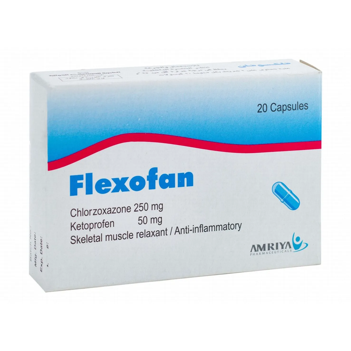 Flexofan 20 caps يعد دواء مركب يستخدم بشكل أساسي كمسكن قوي للألم، وباسط فعال للعضلات، حيث يوصف للتخفيف السريع من الآلام الحادة، والمزعجة الناتجة عن التشنجات العضلية، والتهابات المفاصل، كما أن تأثيره يعود إلى مزيج مدروس من المواد الفعالة التي تعمل معًا على محاربة الالتهاب وإرخاء العضلات، وتغذية الأعصاب، مما يساعد على استعادة النشاط اليومي بصورة أسرع.