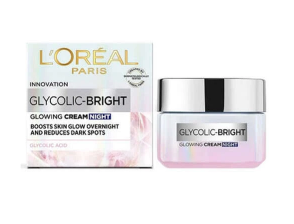 لوريال باريس جليكوليك برايت كريم الليل للاشراقة – 50 مل هو كريم ليلي يحتوي على حمض الجليكوليك، وهو من أحماض ألفا هيدروكسي التي تُستخدم في تقشير البشرة بلطف وتجديد خلايا الجلد. يعمل هذا الكريم على تحسين إشراقة البشرة ومظهرها خلال الليل بينما تستفيد البشرة من مكونات الكريم المهدئة والمغذية.