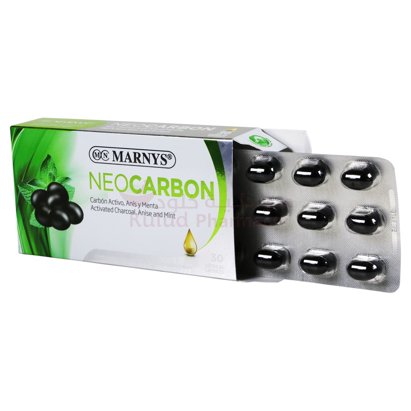مارنيز نيوكاربون 30 كبسولة (Marnys New Carbo Capsules) خيار فعّال لتحسين راحة الجهاز الهضمي والتخلص من الغازات والانتفاخ، خاصة لمرضى القولون العصبي. الاستخدام الصحيح يحقق أفضل نتيجة مع تقليل أي آثار جانبية