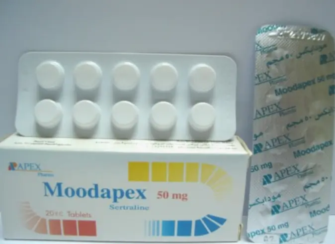 مودابكس moodapex 50 دواء مضاد للاكتئاب ينتمي لفئة مثبطات استرداد السيروتونين الانتقائية، يعزز المزاج ويخفف أعراض الاكتئاب والقلق، والوسواس القهري.
