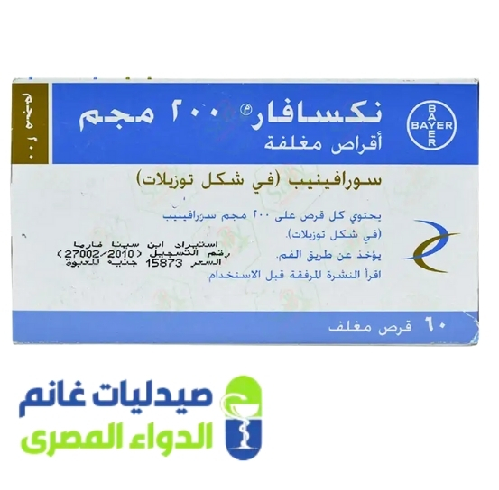 نيكسفار 200 مجم 60 قرص (Nexavar 200mg) هو دواء يحتوي على المادة الفعالة سورافينيب (Sorafenib)، ويُستخدم لعلاج بعض أنواع السرطان عن طريق تثبيط نمو الخلايا السرطانية ومنع تكاثرها. ينتمي نيكسفار إلى فئة الأدوية المعروفة بمثبطات الكيناز (Kinase Inhibitors)، والتي تعمل على إيقاف إشارات النمو داخل الخلايا السرطانية.